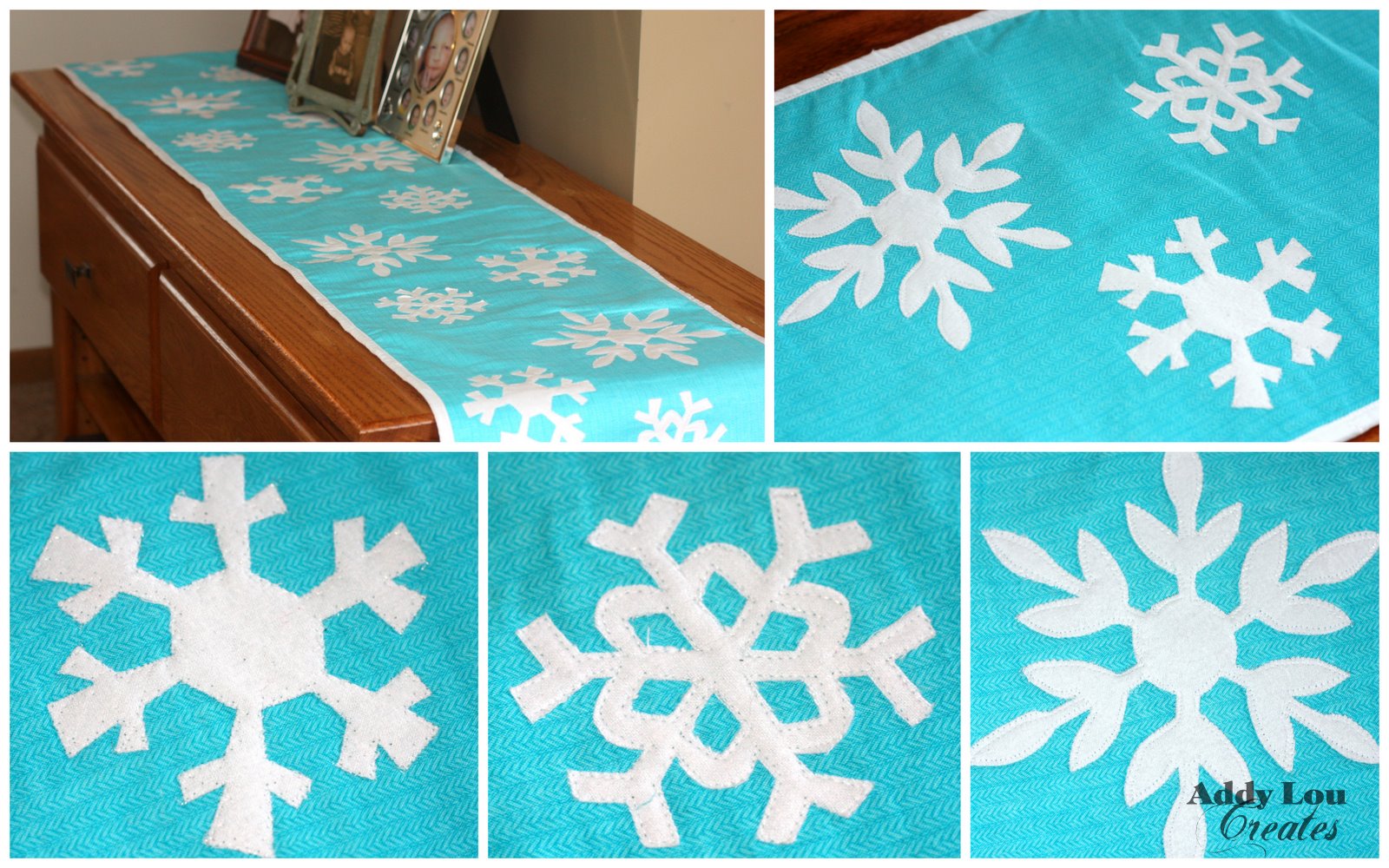 Another table runner. This one has appliqued flannel snowflakes. I made this one and and a Christmas tree table runner for my mother-in-law.