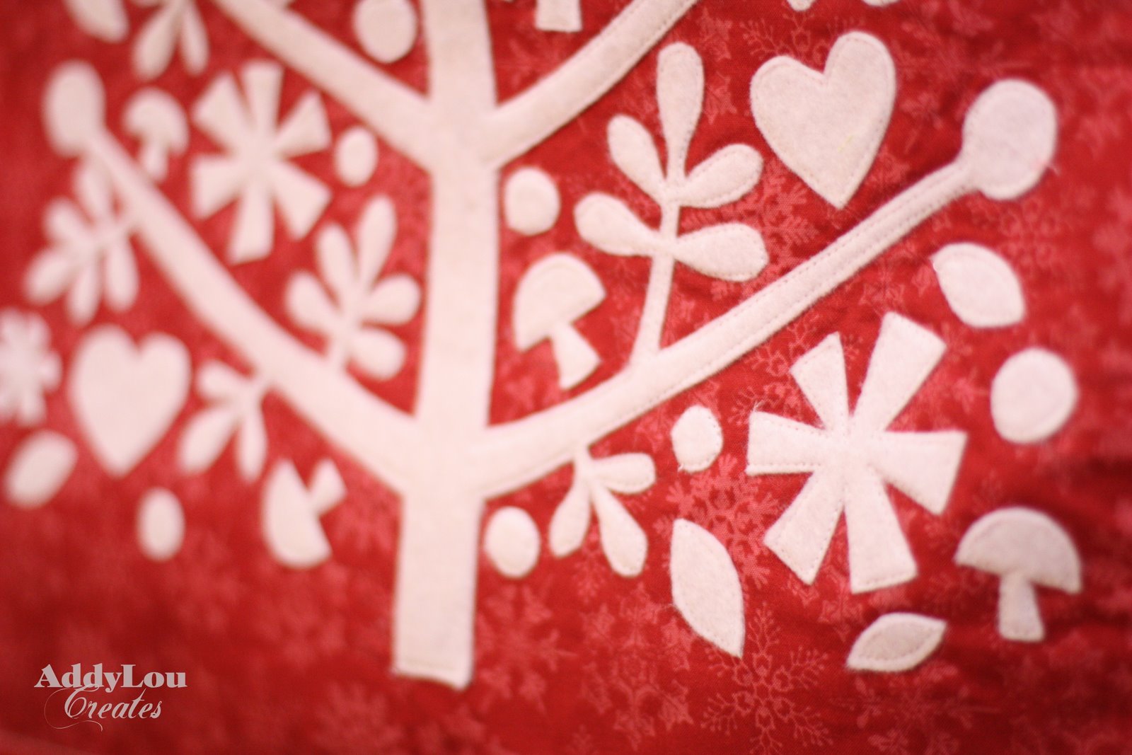 I just used lite fusible web with the patterned traced on it and adhered it to felt. After cutting the image out I ironed it on my fabric and then sewed around the edges. It was fairly easy. I did use woven fusible interfacing on the top to give it a little more stiffness.